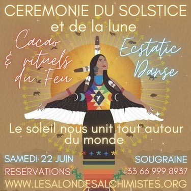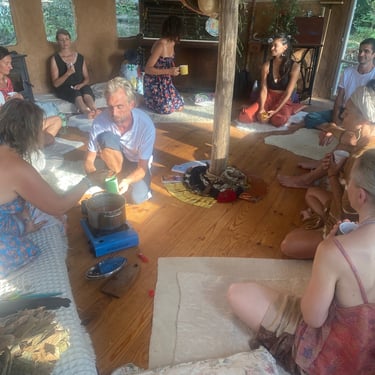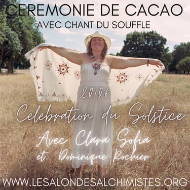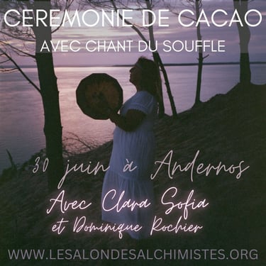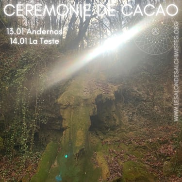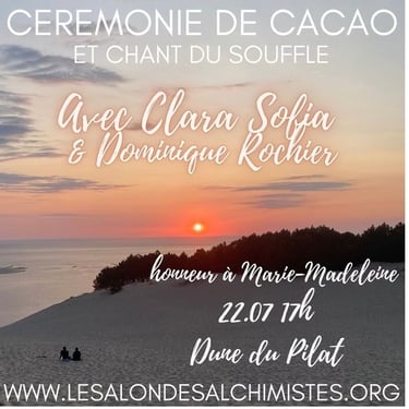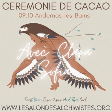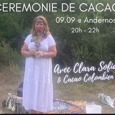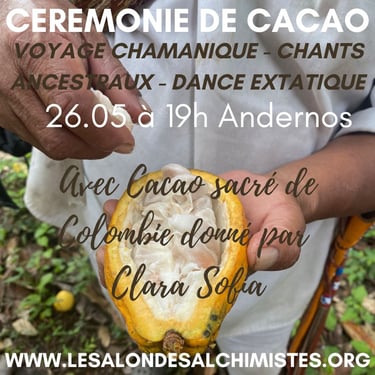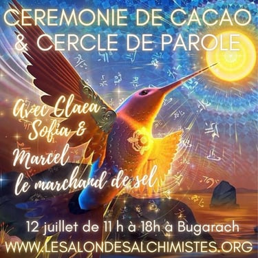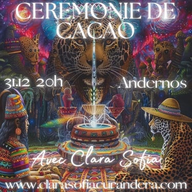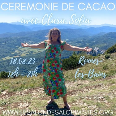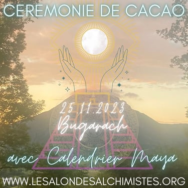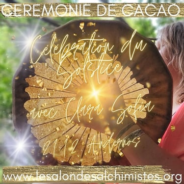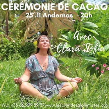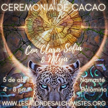 The ceremony consists of the sharing of cacao in a collective healing in connection with the sacred plant and Source. The healing consists of a recalibration of the energy centers and the activation of your own light codes.