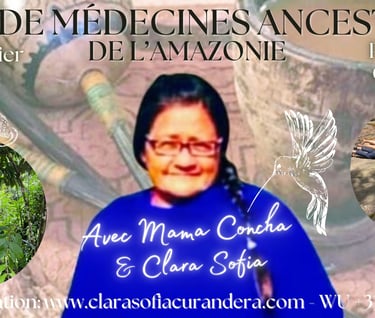 Grâce au pouvoir de l'eau et de la terre, vous recevrez une puissante guérison qui répondra à vos questions et guérira vos traumatismes et maladies physiques. La retraite se déroulera dans la réserve de Kementsà, et vous pourrez consulter Mama Concha pour un programme de guérison spécifiques et recevoir des soins complémentaires à base de plantes médicinales amazoniennes. Mama Concha est particulièrement réputée pour ses traitements pour l'utérus, la prostate et l'asthme, mais son savoir est vaste. Comme elle me l'a dit : « Toute maladie peut être guérie avec la foi.»