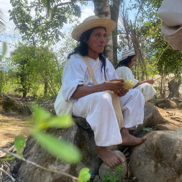 Durant toute la durée de la retraite, nous serons immergés dans la culture des peuples premiers gardiens du coeur du monde. Accompagnés par les Mamos Arhuacos et Kogis, nous serons invités à faire du travail traditionnel de purification et guérison spirituelle. La sagesse ancestrale de la Sierra Nevada de Santa Marta se base sur un système de pagamentos - paiements aux sites sacrés. C’est une offrande aux esprits de la nature qui a travers leur technologie ancestrale, permet de recevoir en échange, la guérison. Ces travaux se font sur des sites sacrés qui peuvent être des pierres ou des rivières selon le travail proposé. Ce travail spirituel est une forme de méditation et se réalise avec la concentration. Un matériel, souvent du coton, qui représente le monde des pensées, est utilisé et la personne met ses pensées dans ce materiel en fonction des instructions du Mamo. Les Mamos font un travail constant de pagamentos afin de maintenir l’équilibre de la planète face aux abus que subi la Terre et son écosystème.